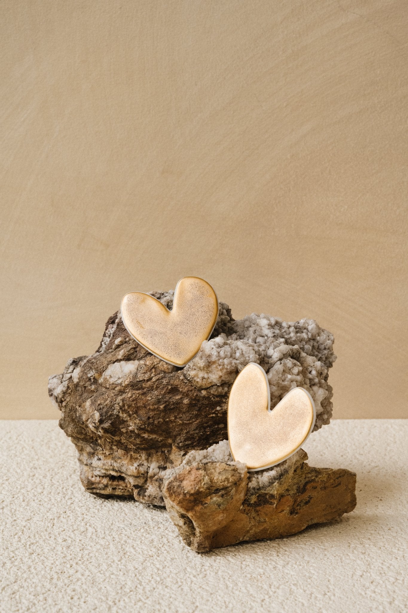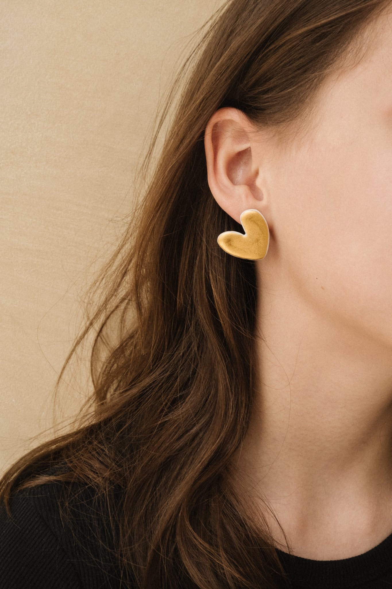 Cette puce d'oreille est réalisée en porcelaine blanche et formée en coeur.