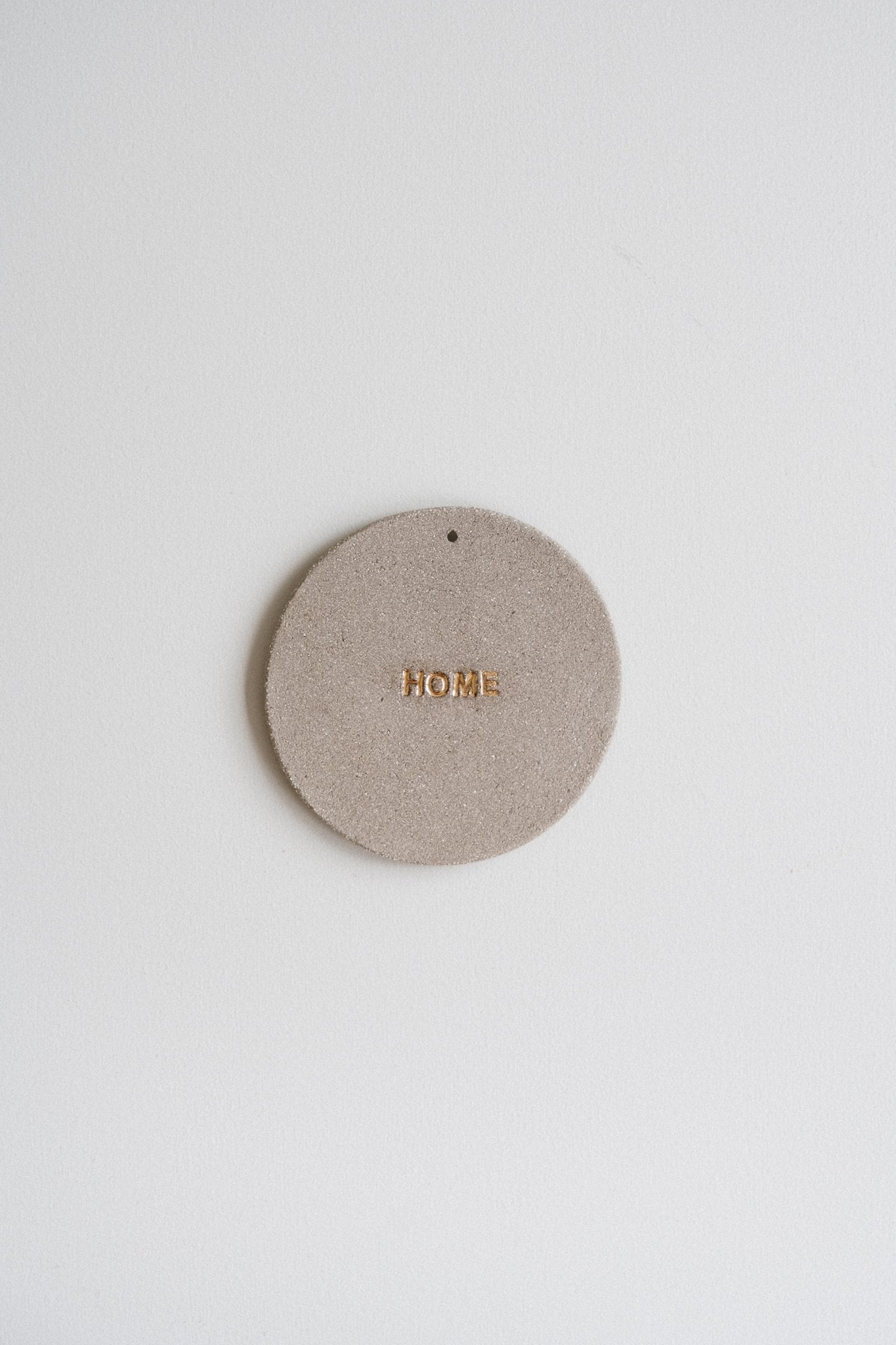Les lettres sont tatouées par impression sur la terre crue. Après séchage, la pièce part en cuisson à 960°C. Ensuite j’émaille en transparent brillant l’intérieur des lettres pour mettre en avant le contraste du des lettres brillantes et de la plaquette brut. Cuisson à 1260°. Pour finir, je peins à la main le coeur et les lettres à l’or fin et cuits une dernière fois à 800°