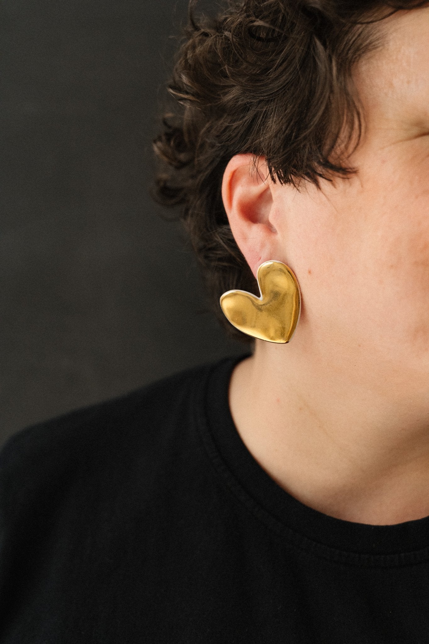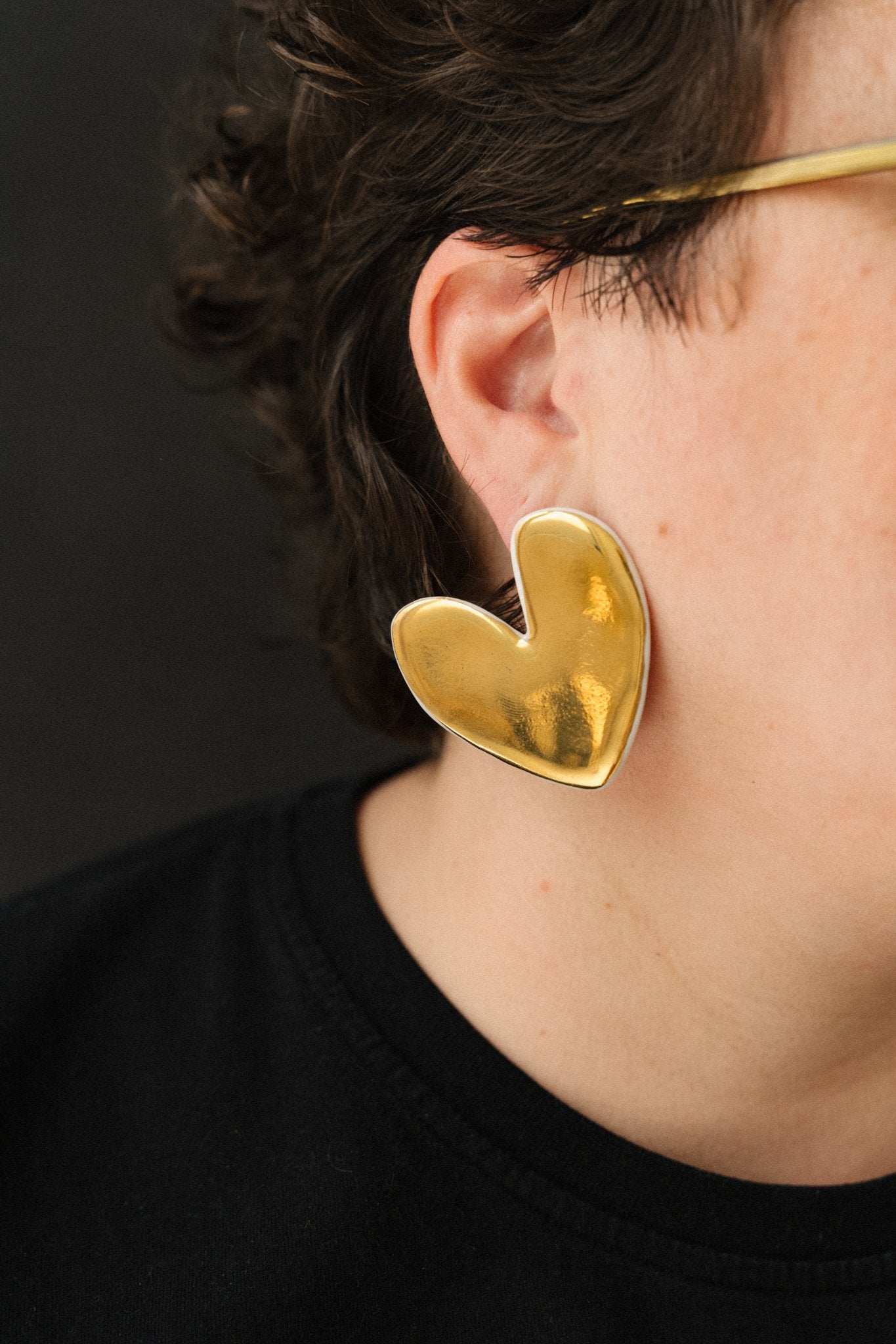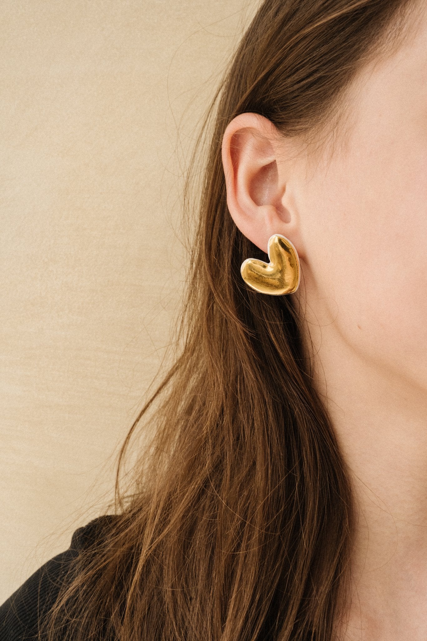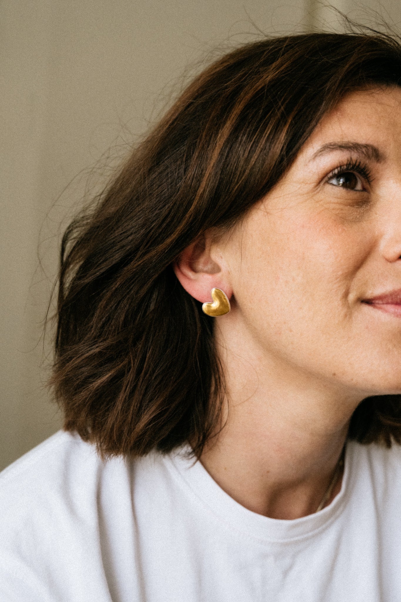 Cette puce d'oreille est réalisée en porcelaine blanche et formée en coeur.