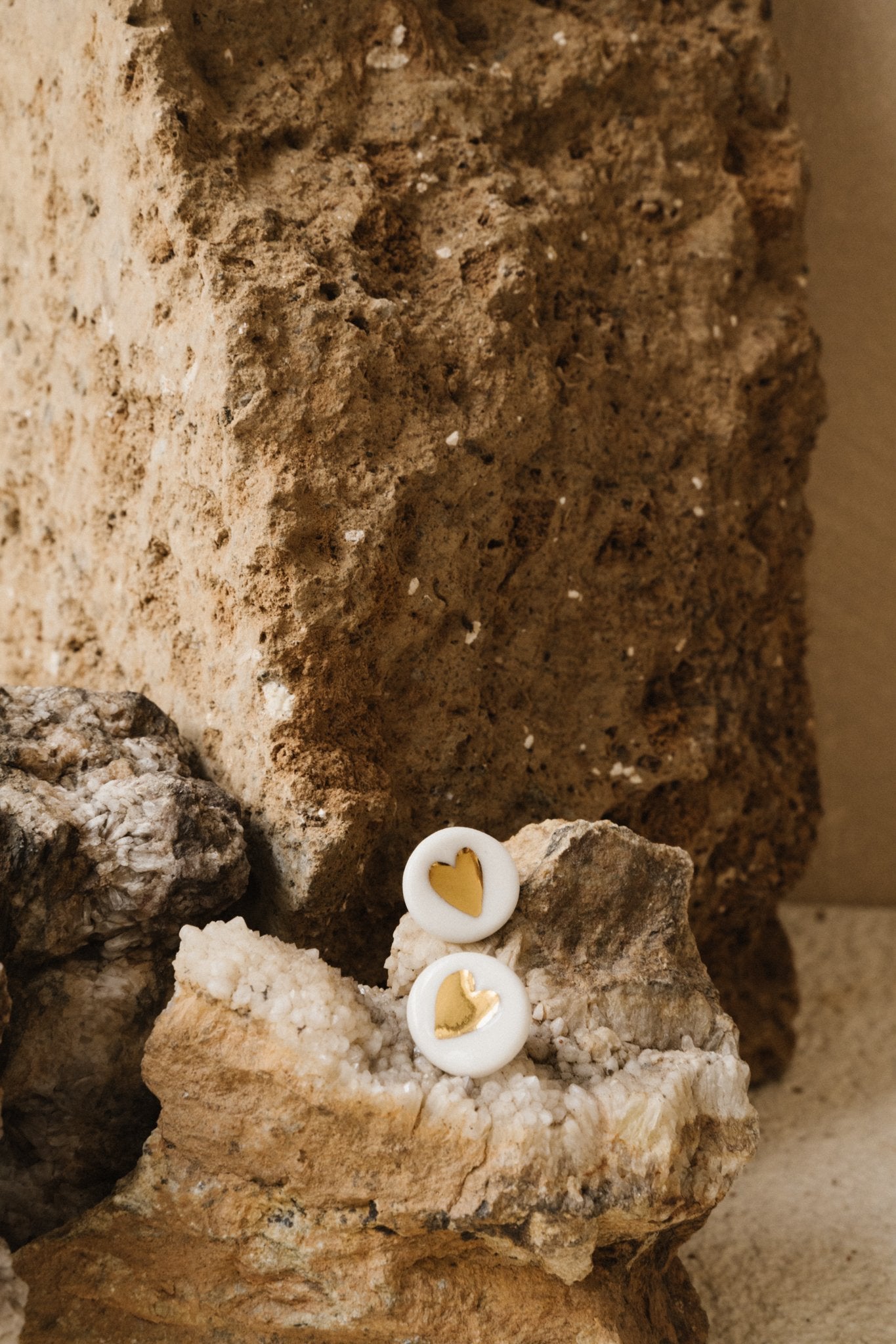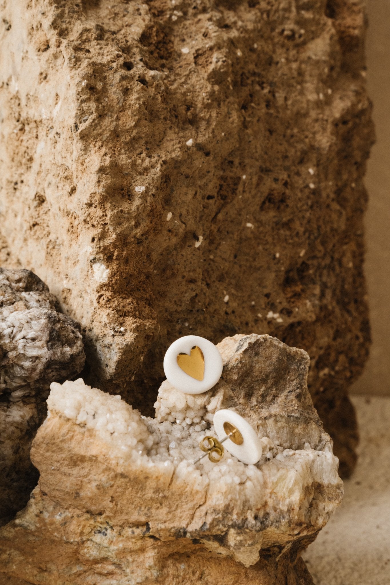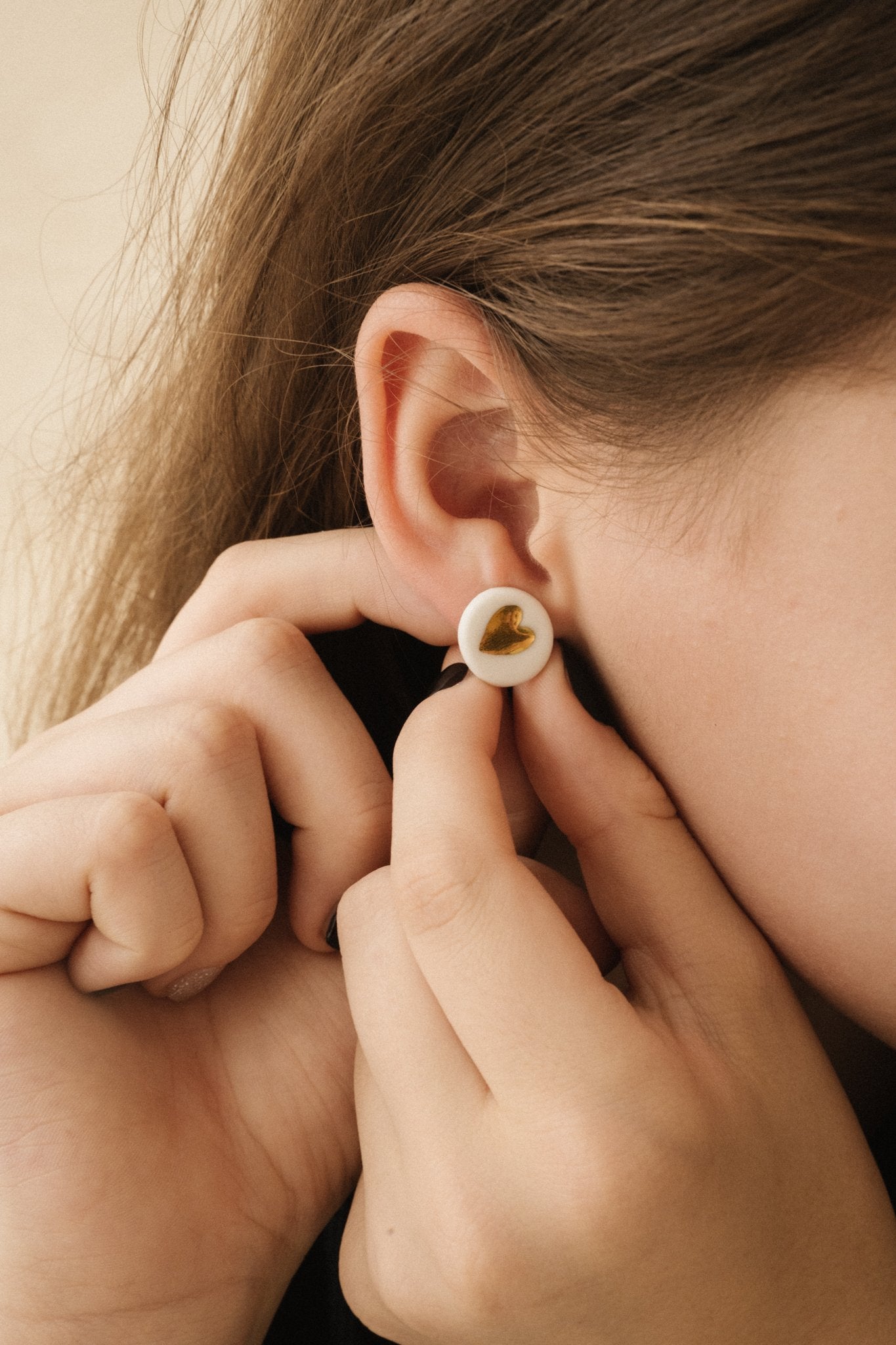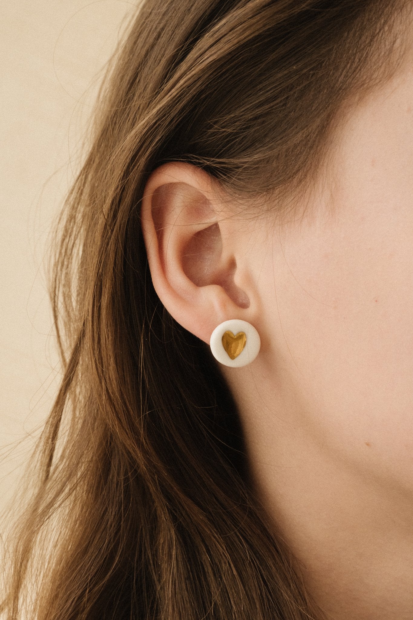 Cette puce d'oreille est réalisée en porcelaine blanche puis formée en rond. Le coeur est ensuite tatoué par impression.