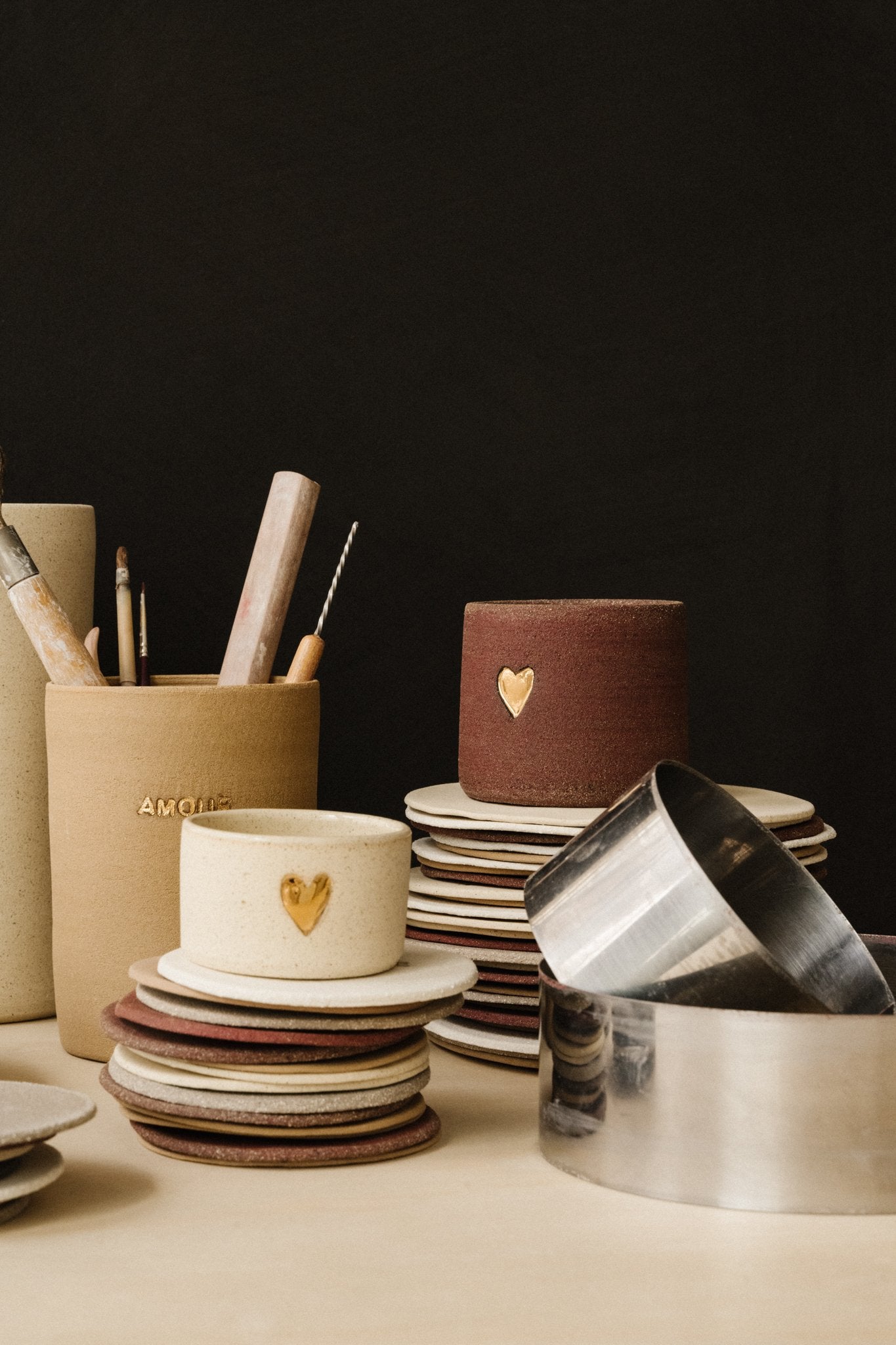 Tous les contenants sont entièrement façonnés à la main, tournés, décorés et émaillés dans mon atelier maison à Lyon. Chaque pièce est UNIQUE, le fait main implique de grand caprice, il peut donc y avoir des petites différences et de légères déformations qui font de chaque pièce la votre et celle de personne d’autre ♡