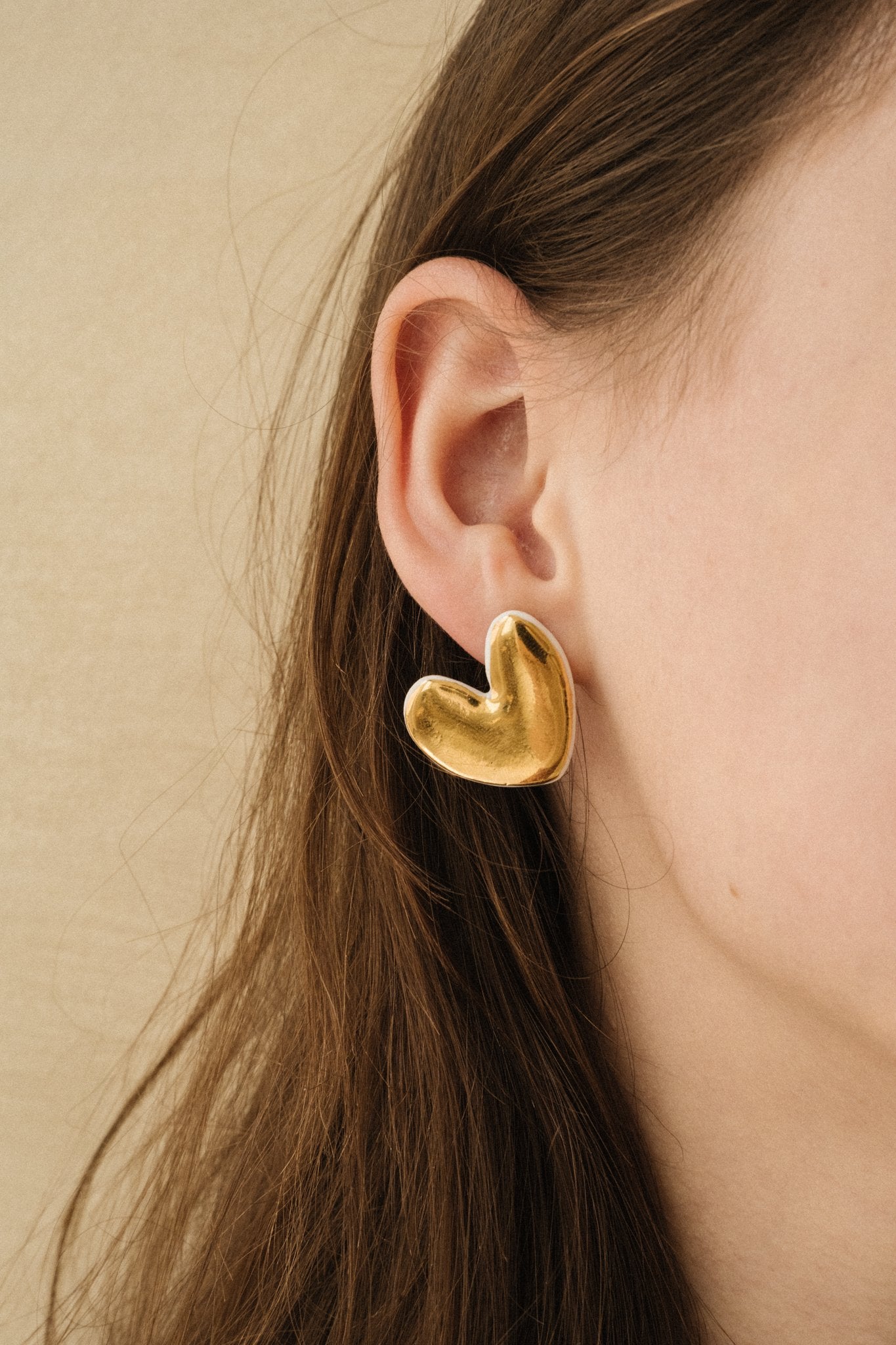 Cette puce d'oreille est réalisée en porcelaine blanche et formée en coeur.