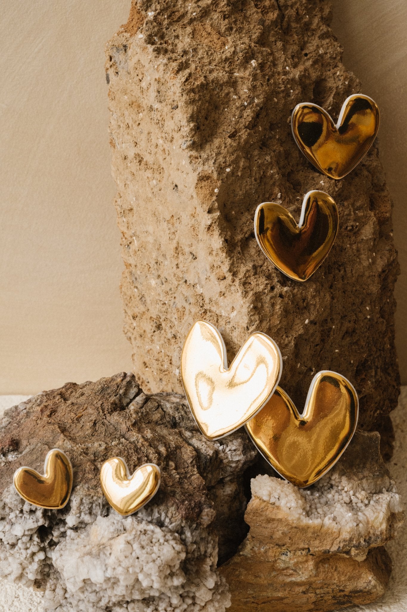 Entièrement faite à la main, elle cuit une première fois à 960° et ensuite j'applique un émail brillant et cuis 1260°. Pour finir, j'applique l'or et cuis une dernière fois à 800°.