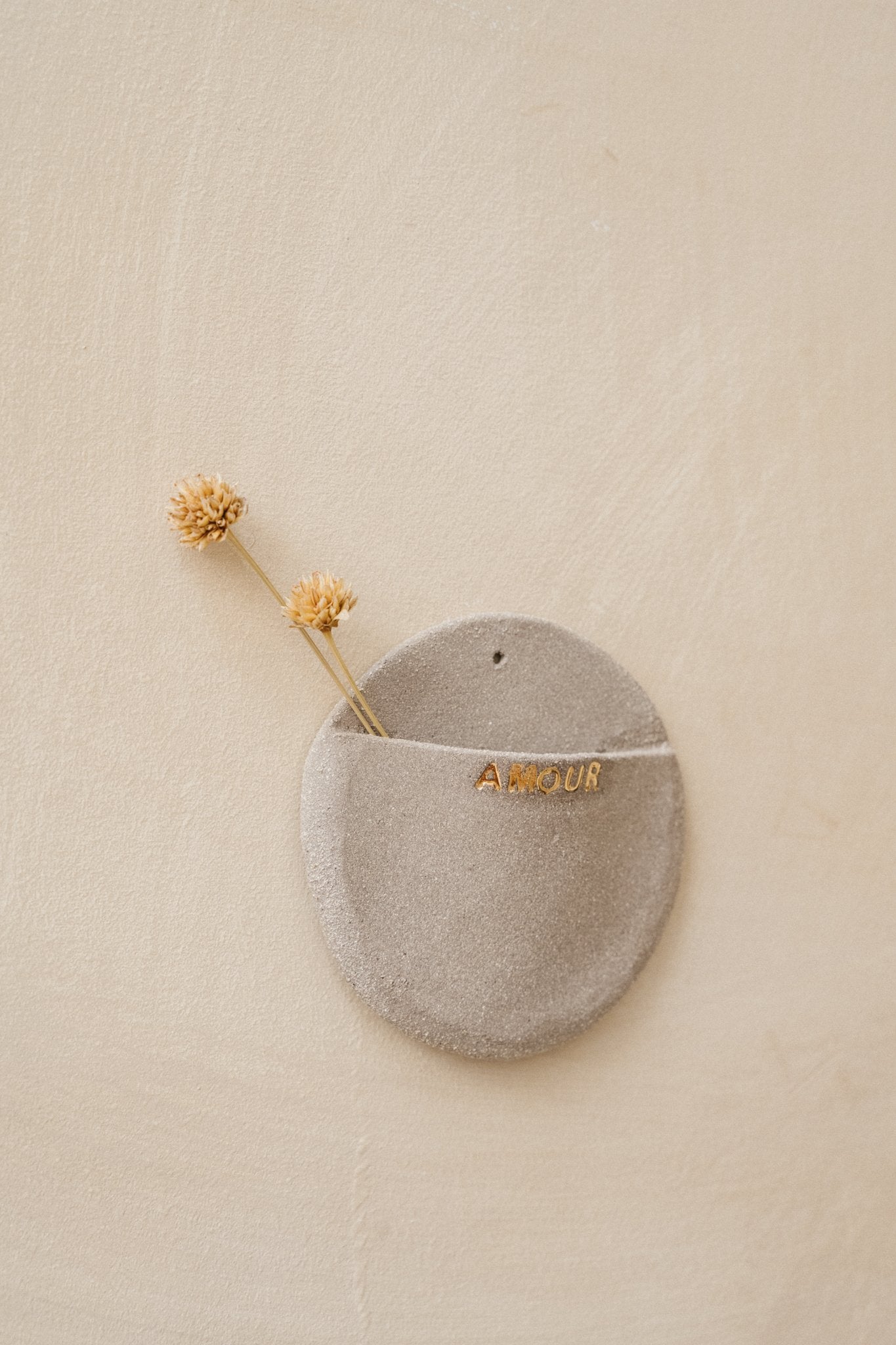 Vase mural réalisé en grès ou porcelaine blanche et tatoué par impression.